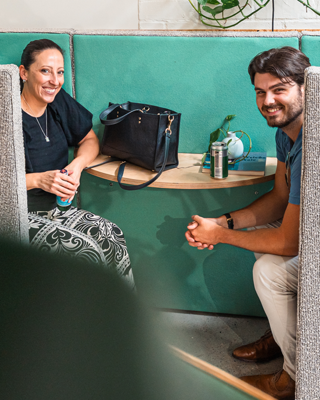 Instead of a single heavy central mass, CLOVER uses individually placed legs to create a lighter, more open silhouette — giving the entire configuration room to breathe. The optional integrated planter brings gentle biophilic separation, softening acoustics and inviting a natural rhythm into the work zone.